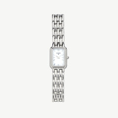 Your everyday statement piece, designed with a refined rectangle face and a fluid woven-link bracelet that catches the light with every movement.