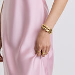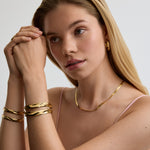 Details: Sculptural gold at its boldest. A timeless statement bangle with fluid, eye-catching curves.