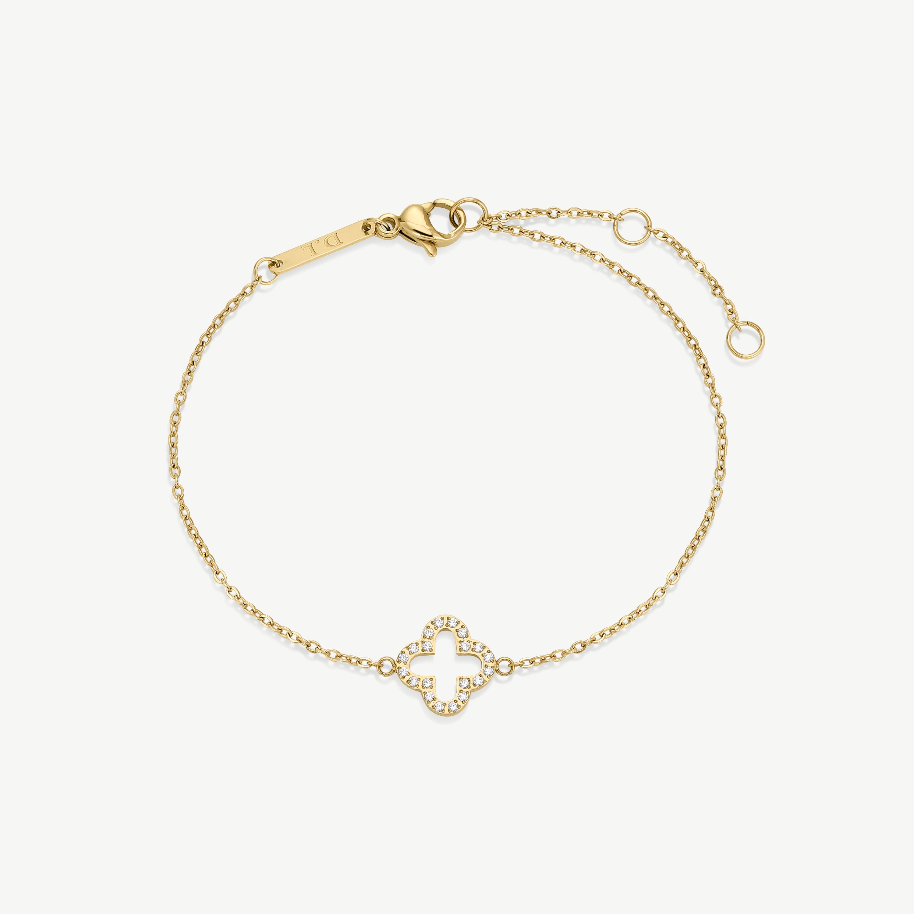 The Pavé Clover Bracelet is a beautiful addition to any jewellery collection. Its delicate outlined design and pavé details add a touch of glamour to any bracelet stack.