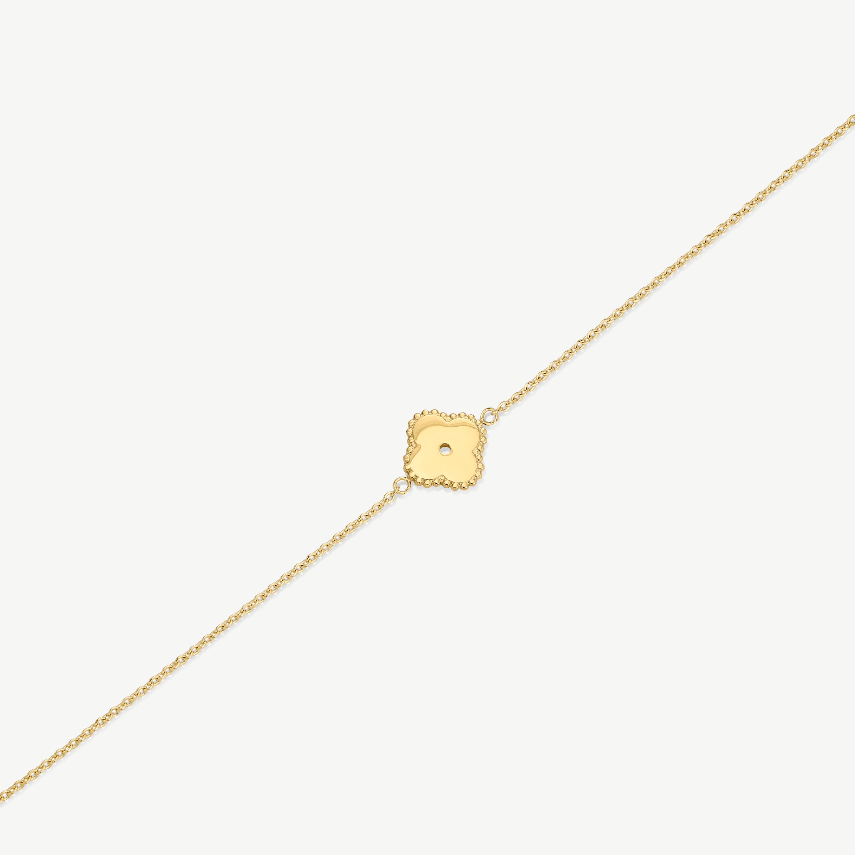 Delicately crafted with a detailed clover design, this fine chain bracelet adds a touch of elegance to any stack.