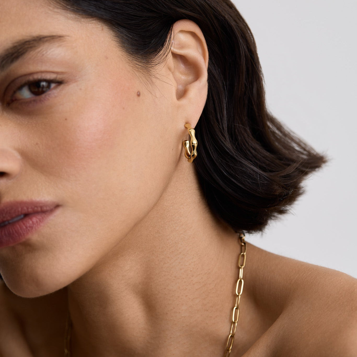 These elegant hoops feature a stunning, gold bamboo detail that adds a touch of sophistication to any outfit. Made with high-quality materials, you'll never have to take them off.