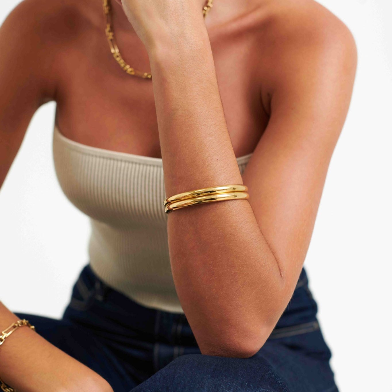 Our jewellery is sweatproof, waterproof, heat resistant, and 10x stronger than gold-plated. It’s hypoallergenic, scratch-resistant, and won’t tarnish - made to wear every day, no extra care needed.