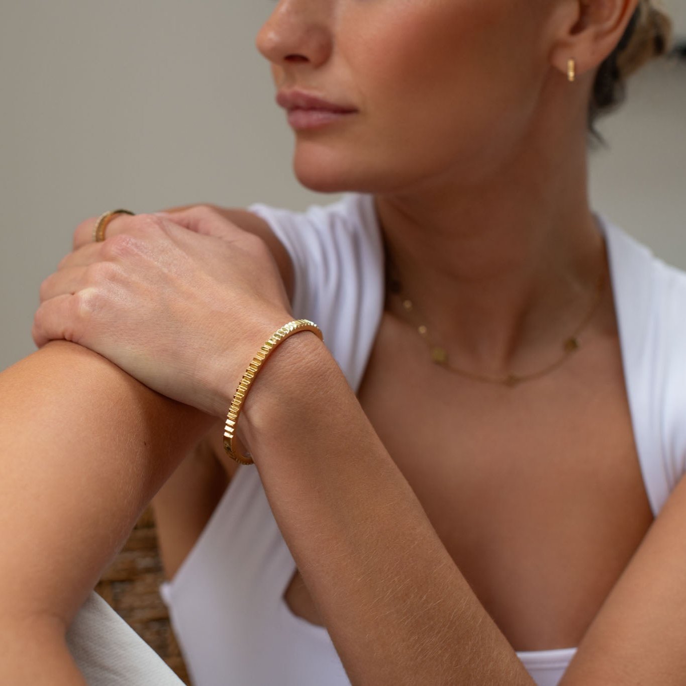 Our jewellery is sweatproof, waterproof, heat resistant, and 10x stronger than gold-plated. It’s hypoallergenic, scratch-resistant, and won’t tarnish - made to wear every day, no extra care needed.