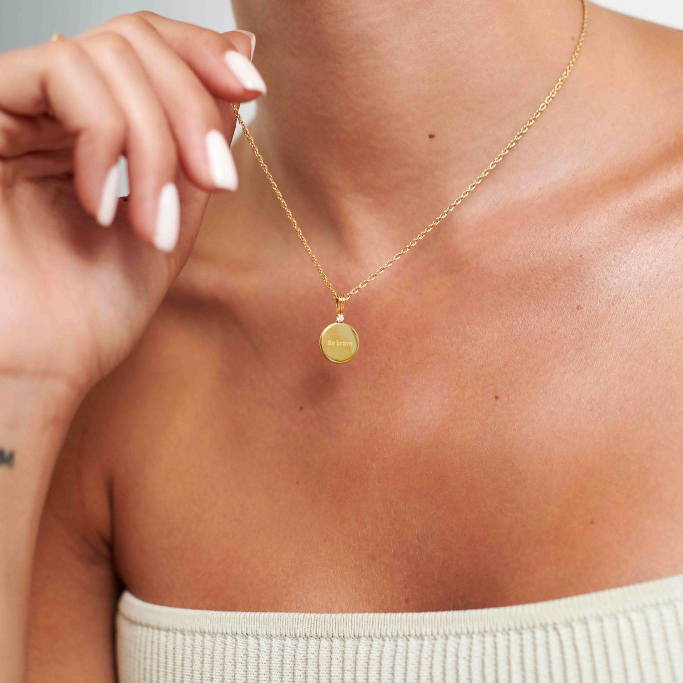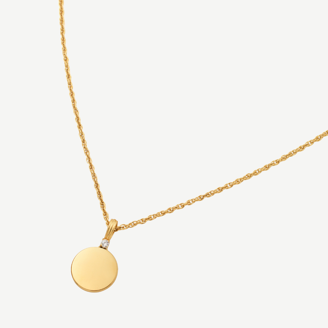 This engravable disc necklace with cubic zirconia detail offers a personalised touch of sparkle. Perfect for creating a timeless and meaningful accessory, this necklace has been crafted to last you a lifetime.
