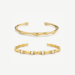 Elevate your bracelet stacks with our Bamboo Bangle duo. This stunning cubic zirconia twist adds a touch of sparkle perfectly paired with our classic bamboo bangle.