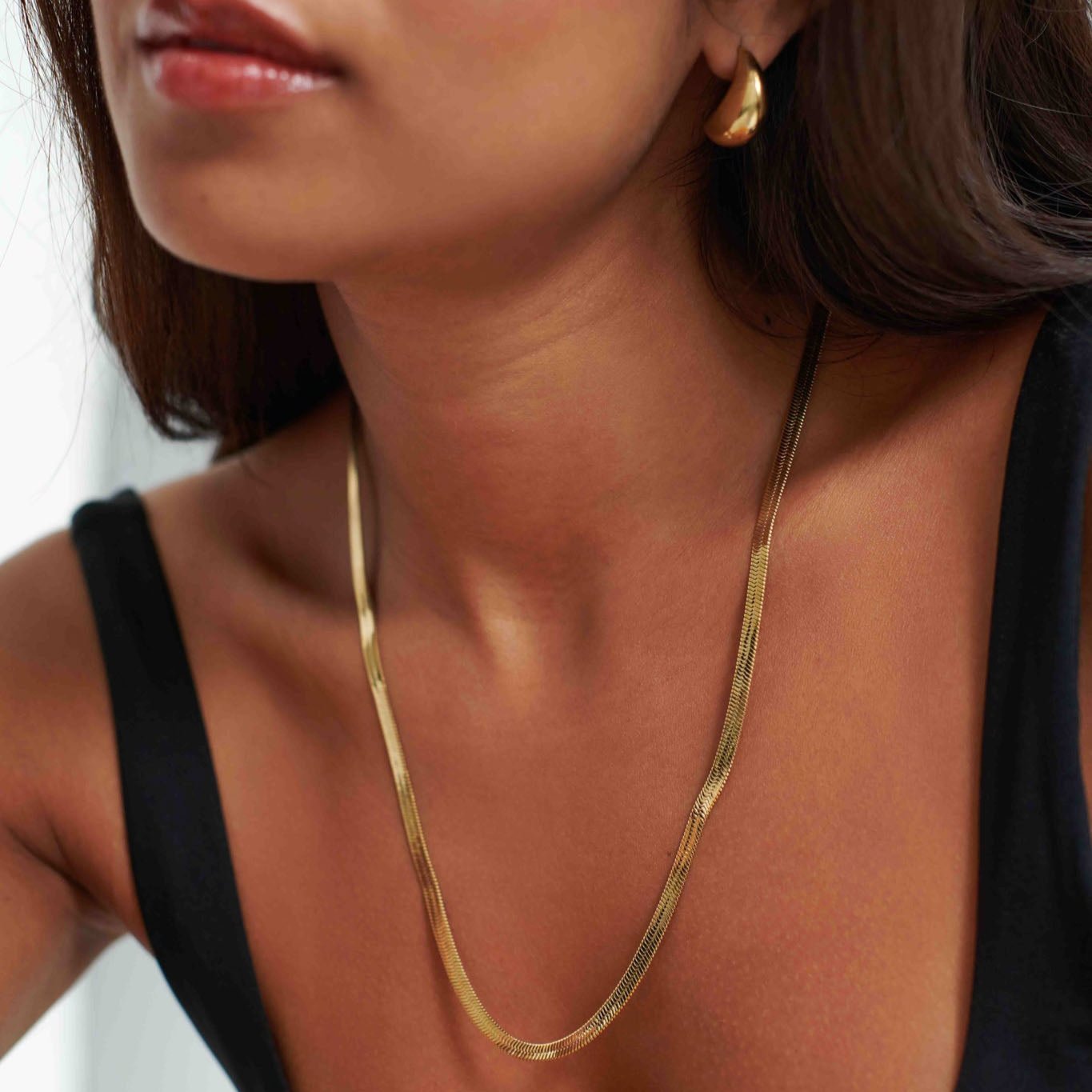 A firm favourite at D. Louise, this timeless necklace is a modern classic. It features a sleek gold herringbone chain which adds a delicate touch to any outfit when styled on its own, or layered with other pieces.