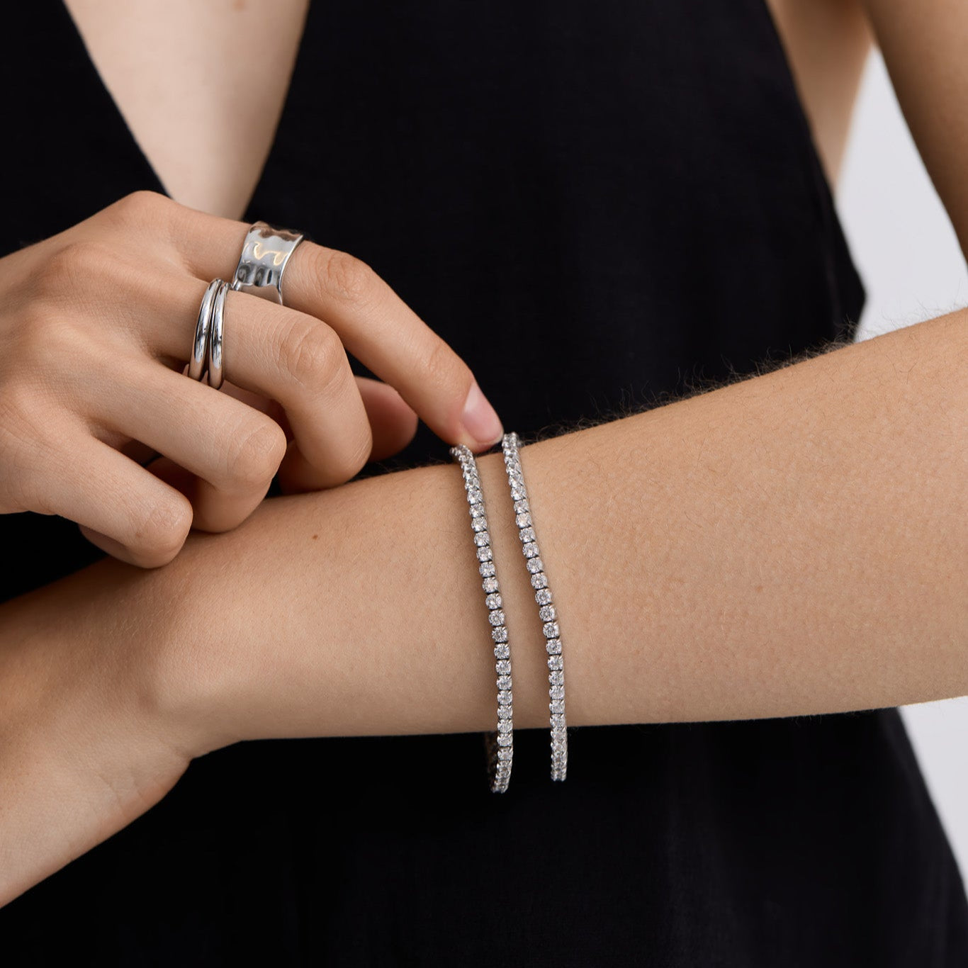 The Luxe Tennis Bracelet takes our classic design to the next level with bold CZ stones, adding a touch of luxury to your bracelet collection.