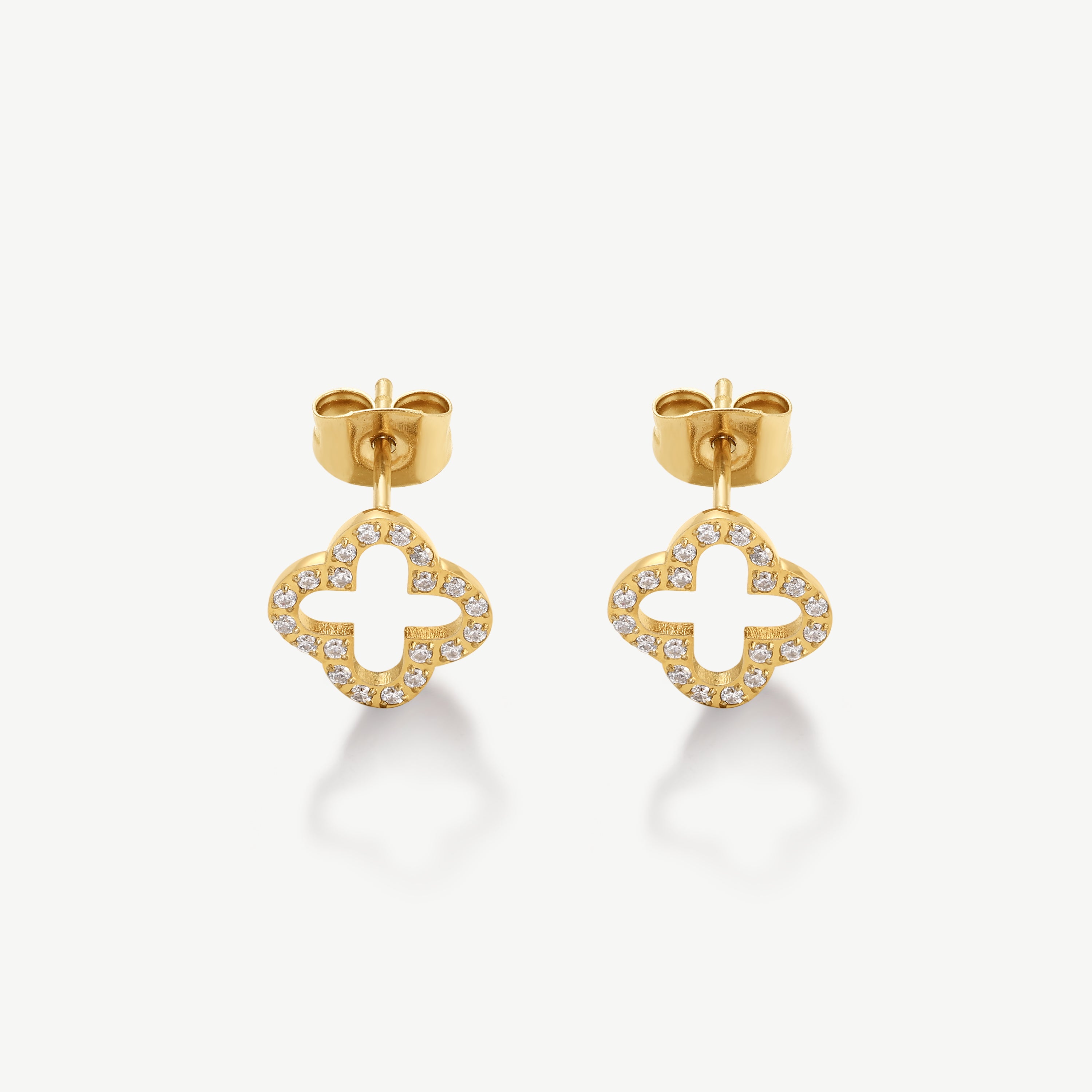 Introducing the Pavè Clover Studs. The intricate pavé outline adds a touch of sparkle to any ear stack, making these dainty studs a must-have accessory.