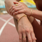 This Ribbed Twist Bangle strikes the perfect balance of classic design with a modern twist. Made with a ribbed pattern and elegant twist detail, it creates a sophisticated and timeless look.