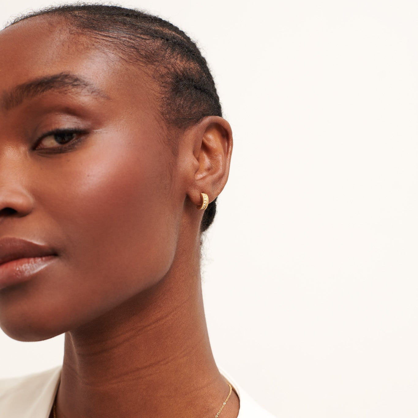 These earrings perfectly combine everyday comfort with a touch of sparkle. Featuring pavé embellishments and textured details, these huggies are the ultimate day-to-night style.