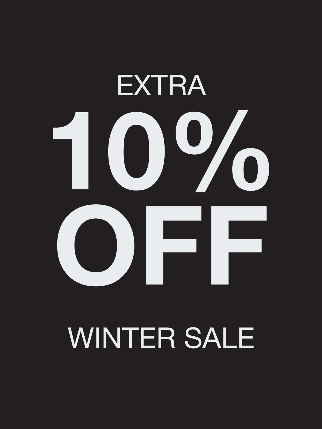 WINTER SALE Our Winter Sale has arrived. Save up to 50% on selected pieces, with an extra 10% added in the final hours.