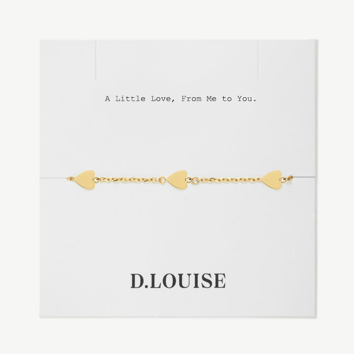A little love, wrapped in gold. This bracelet features dainty heart charms and comes with a meaningful card, making it the perfect gift for someone special.