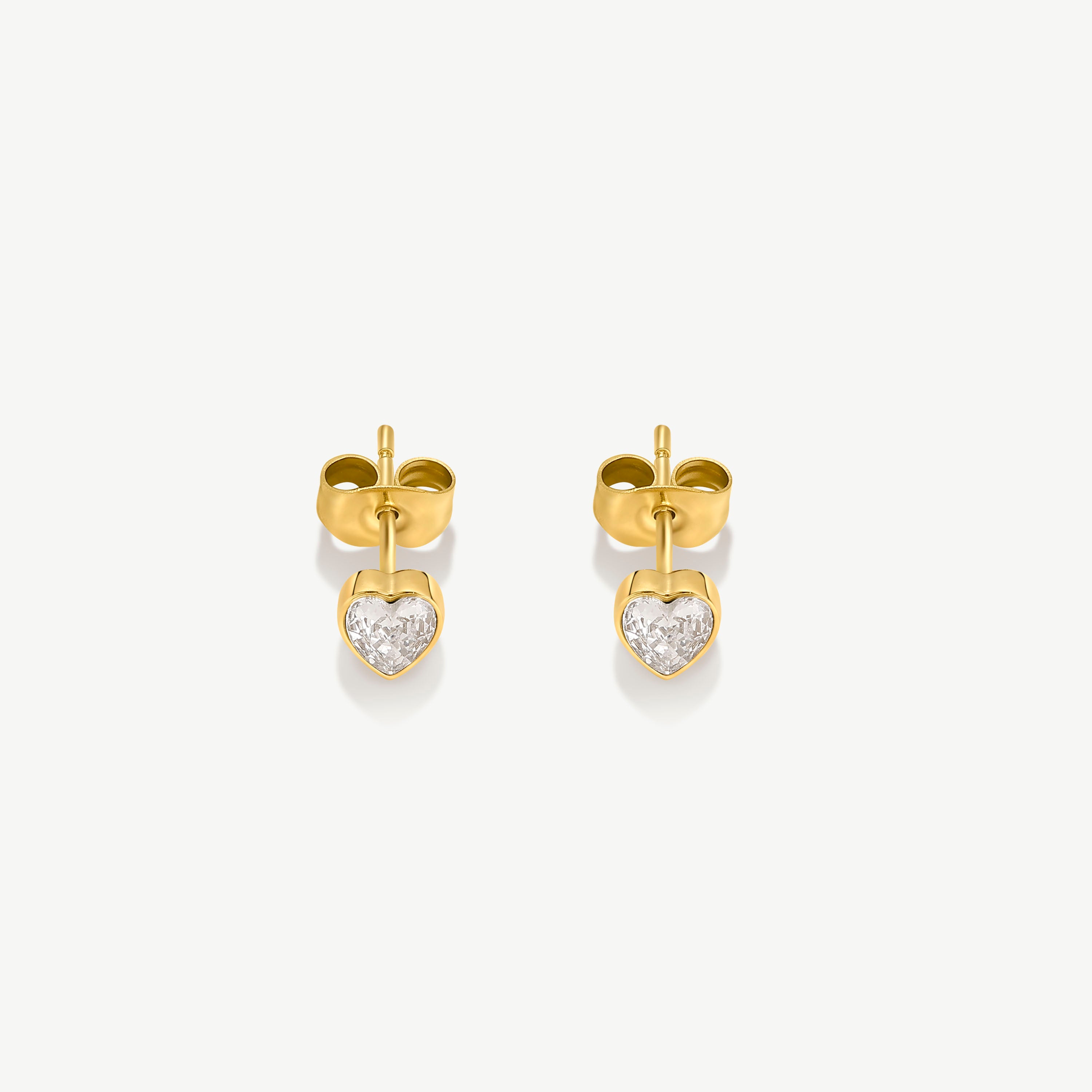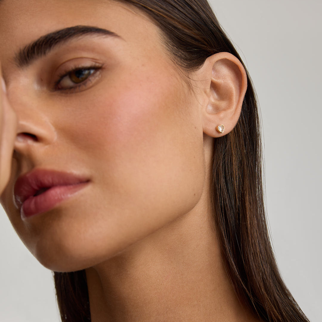 Dainty stud earrings featuring a single sparkling stone of a polished heart - a subtle mix of shine and sentiment.