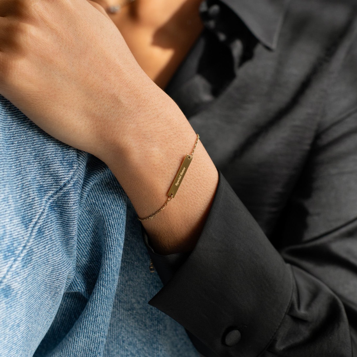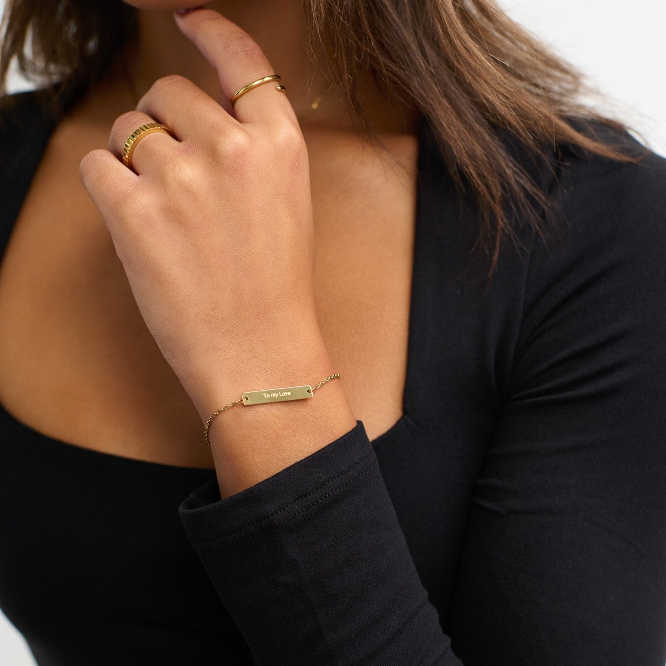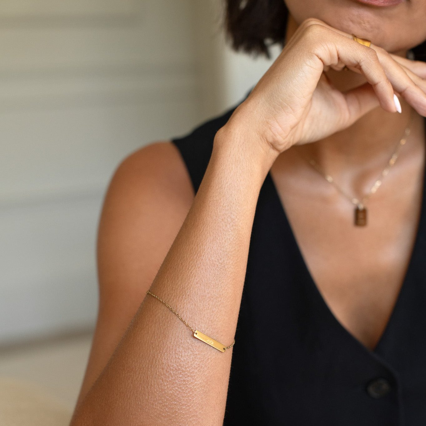 This delicate bracelet features a customisable disc, allowing you to add a personal touch to your bracelet stack and create a one-of-a-kind piece.