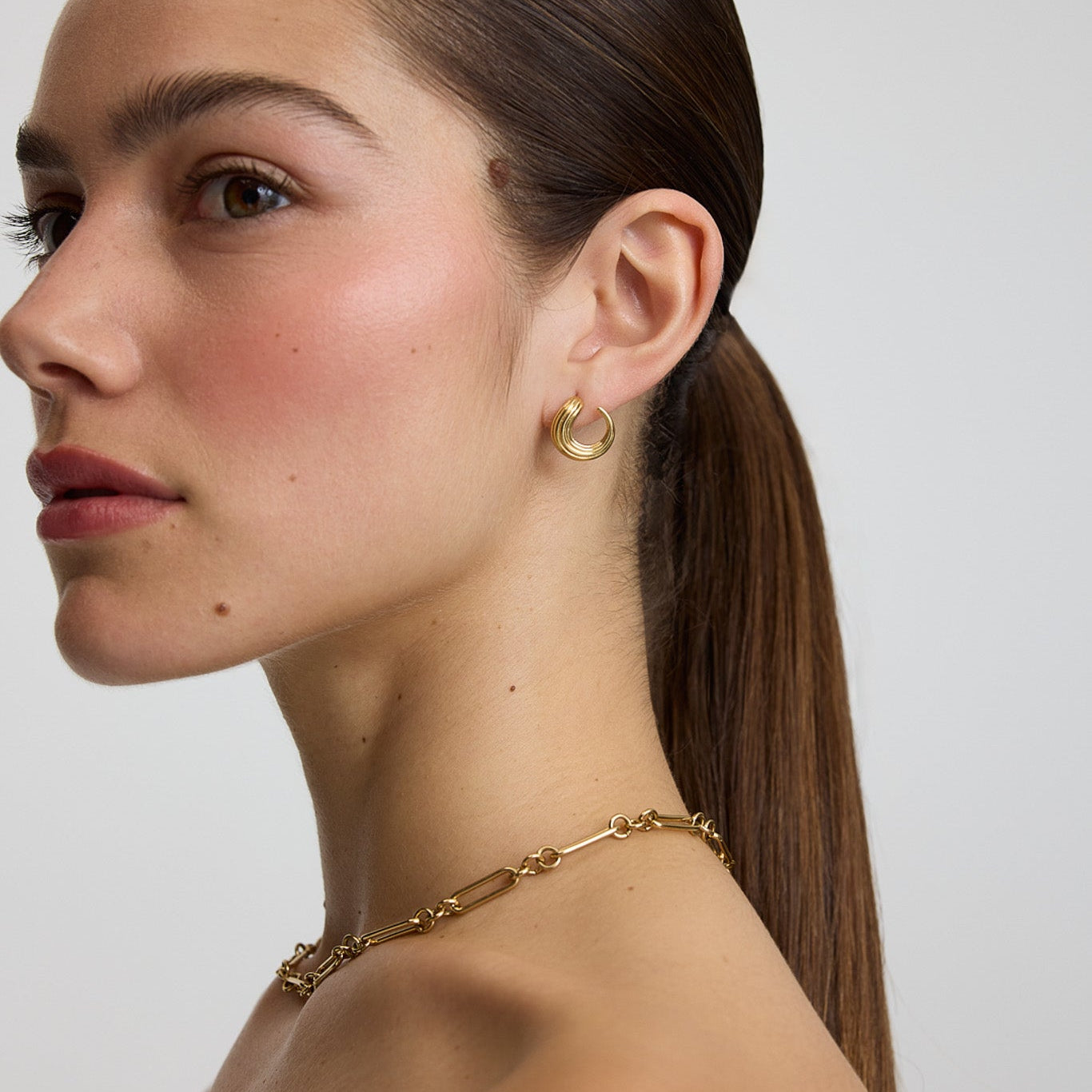 Details: These mini swirl earrings feature a fluid, sculptural design that brings a touch of modern elegance to everyday style.